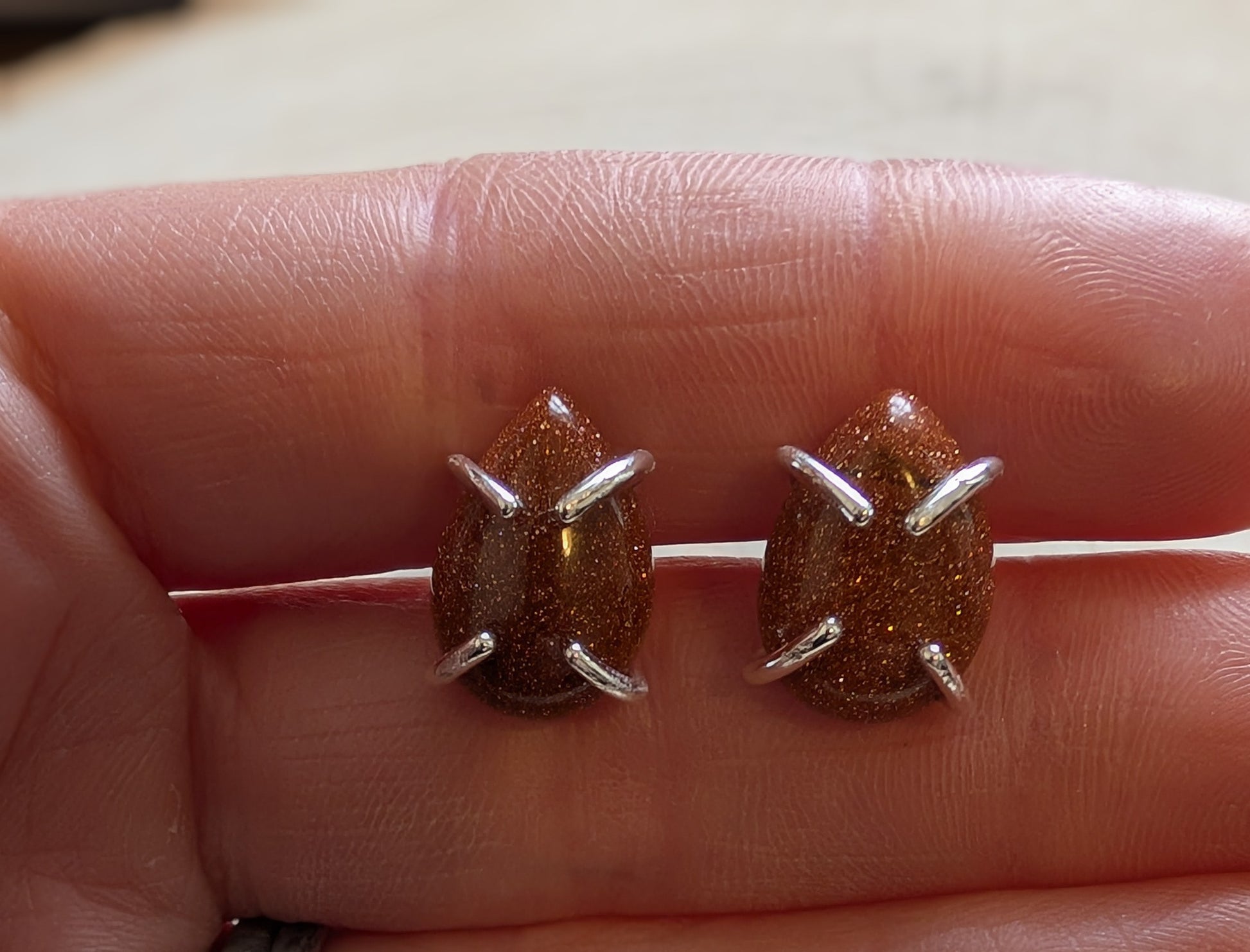 This adorable pair of Goldstone earrings have been carefully handcrafted using 100% sterling silver. These minimalist style studs are perfect for any occasion